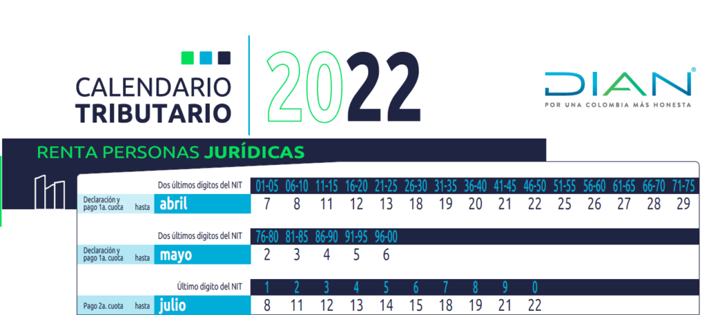 Fechas para presentar la Renta de persona Jurídicas En Colombia para la vigencia 2022